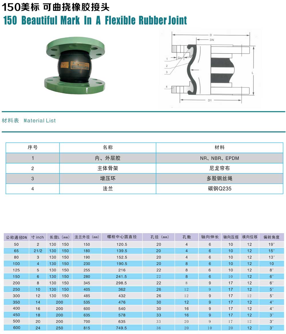 150美標 可曲饒橡膠接頭